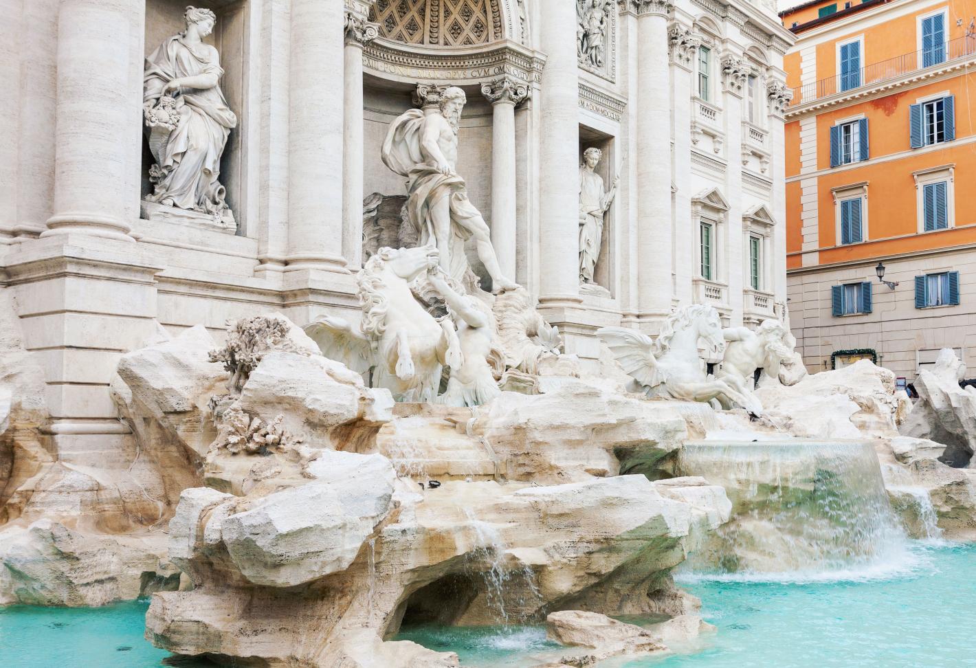 Фонтанът "Треви" е едно от онези места в Рим, които не се разглеждат набързо, а се преживяват. Скрит сред тесните улички на историческия център, той впечатлява с монументалната си барокова композиция и с внушителната фигура на бог Океан, изсечена от бял травертин.
