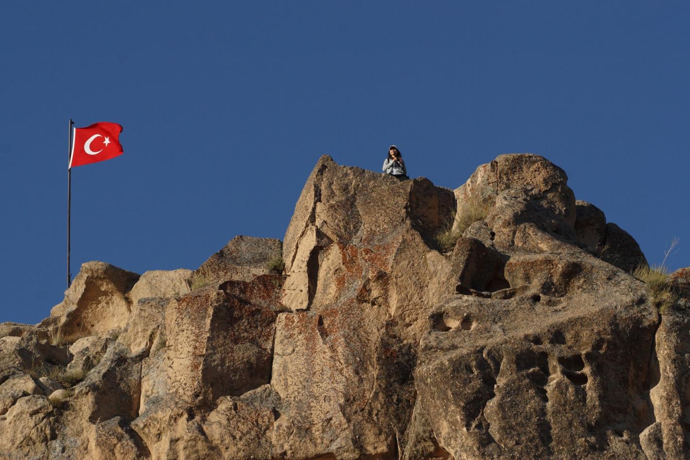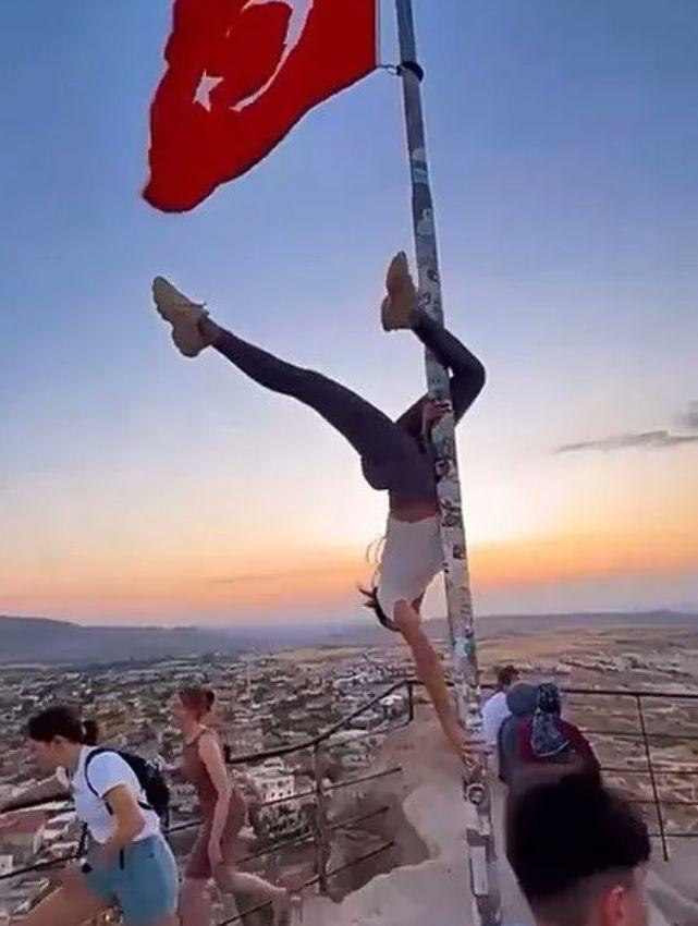 Туристка изпълни танц на пилон с турското знаме в историческата крепост в Учхисар, Кападокия. Кадрите бяха споделени в социалните мрежи.