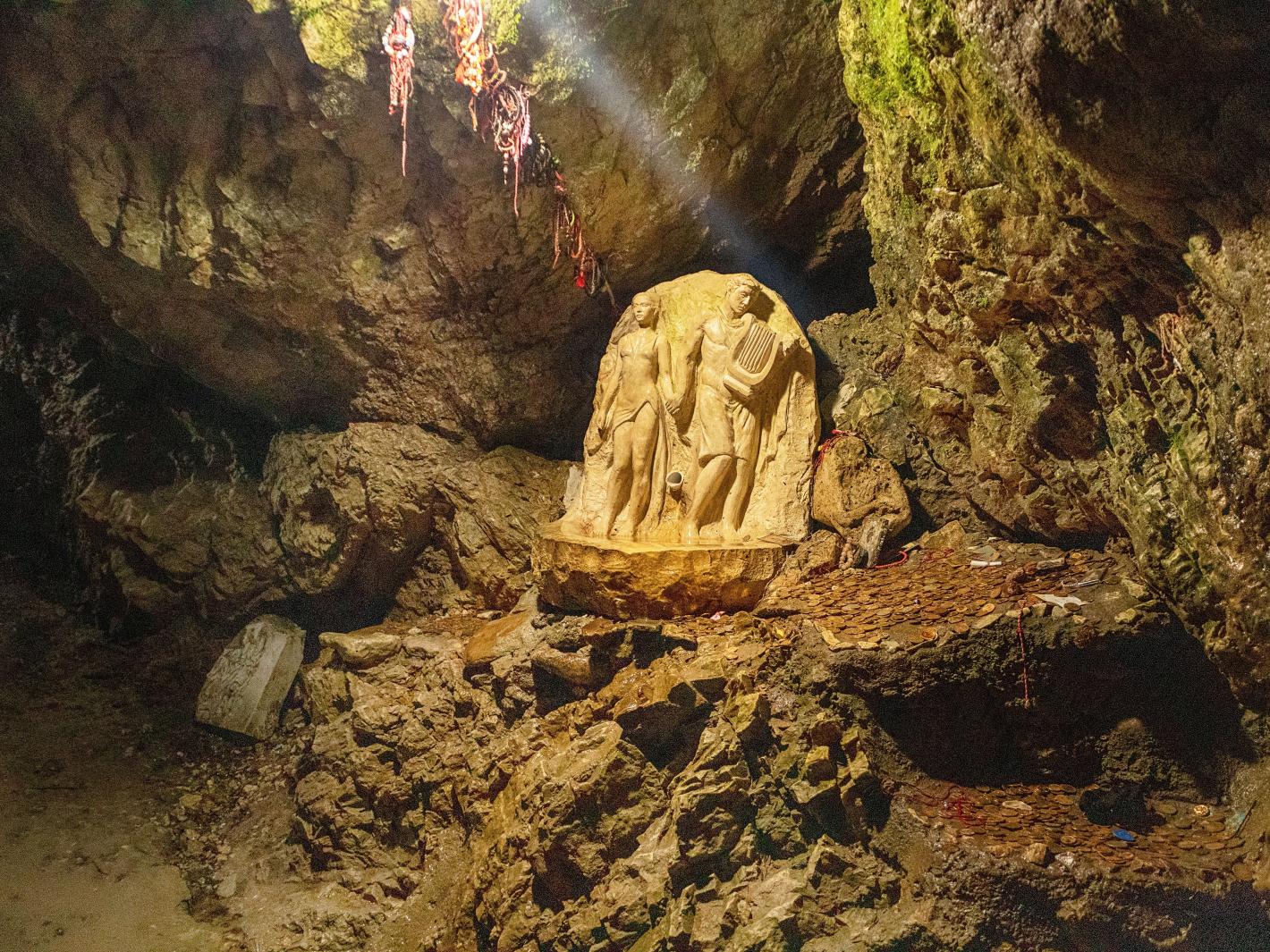 Мястото се свързва и с мита за Орфей и Евридика – според легендата именно тук Орфей загубил любимата си завинаги, обръщайки се към нея преди да излязат на светло. На мястото, където днес е олтарът с лика на Богородица, бликнал извор от сълзите му.