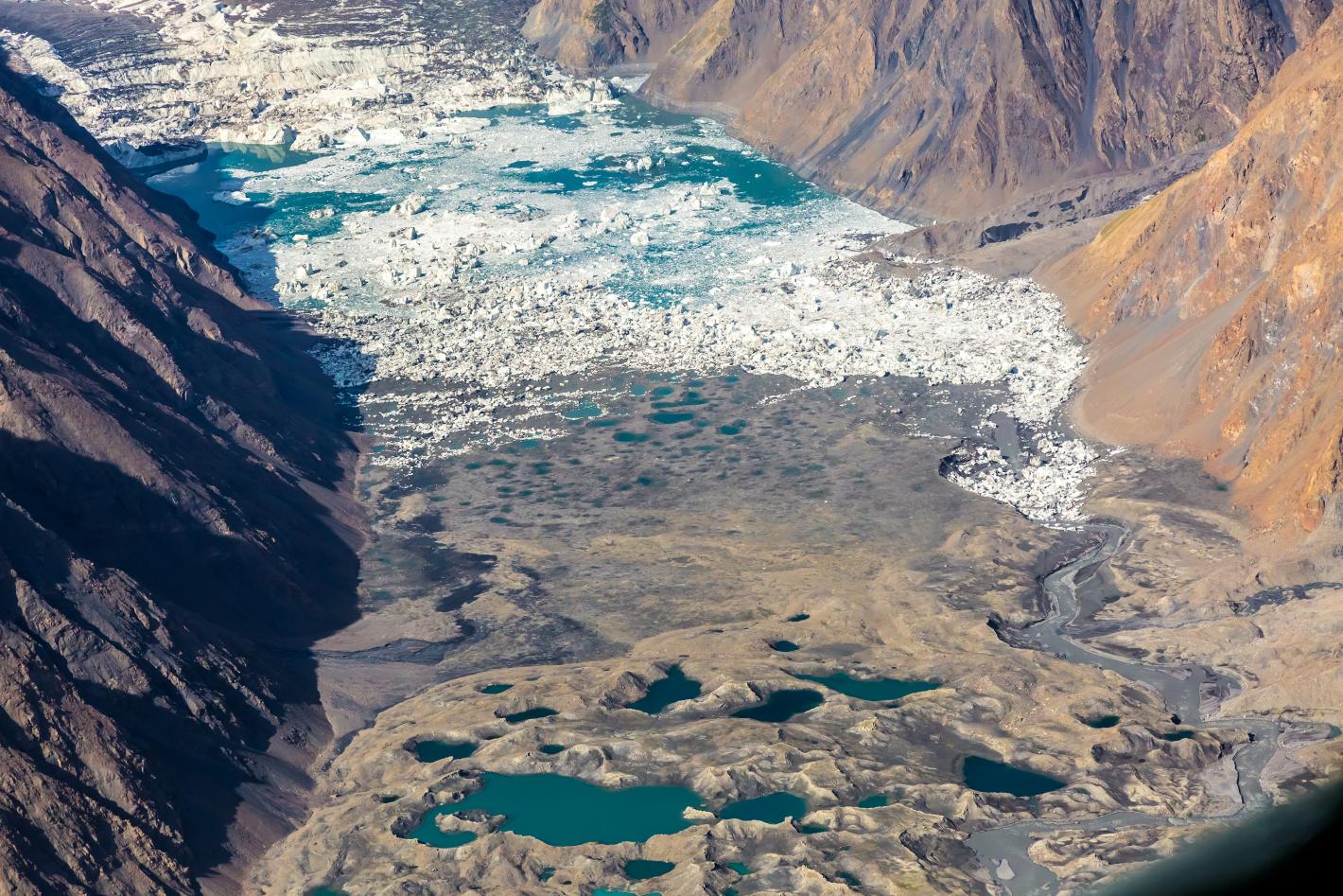 С настъпването на пролетта ледът се топи, образувайки езеро в езерната долина, затворено от ледена преграда. Въпреки това, през август, когато температурата в района се покачва допълнително, язовирът се топи и езерото се оттича в река Инилчек.