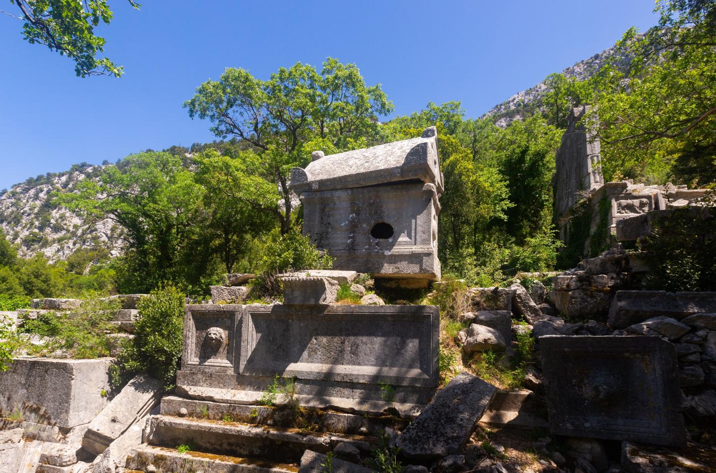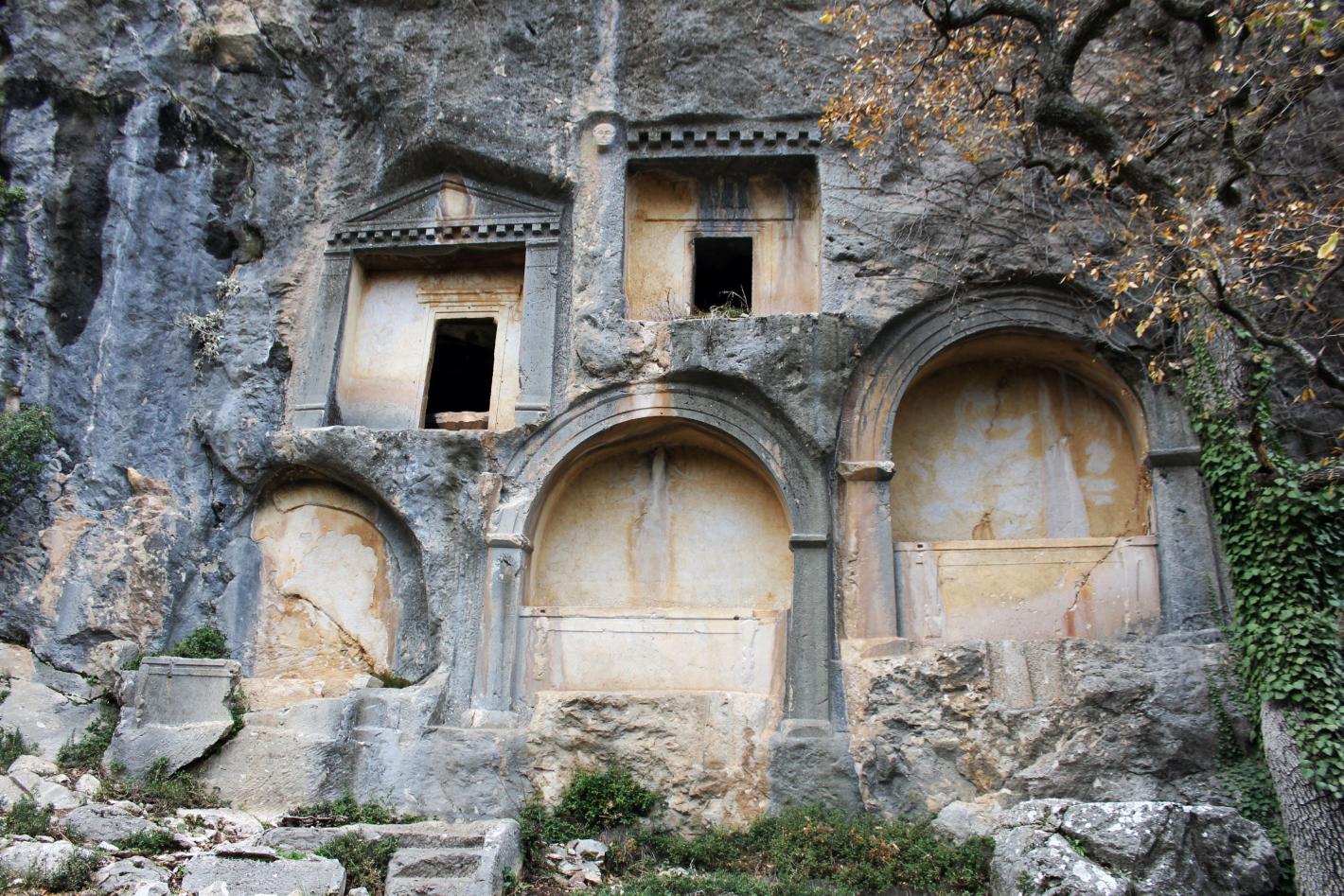 В агората могат да се видят разпилени камъни и останки от величествена улица, която водела към гробниците на богатите жители. Древни саркофази, издълбани със символи – щитове и копия за воини – лежат пръснати. Някои са огромни, други незавършени, но всички са били разбивани през вековете. Корени и бръшлян са проникнали в каменните им стени, а времето ги е погълнало бавно.