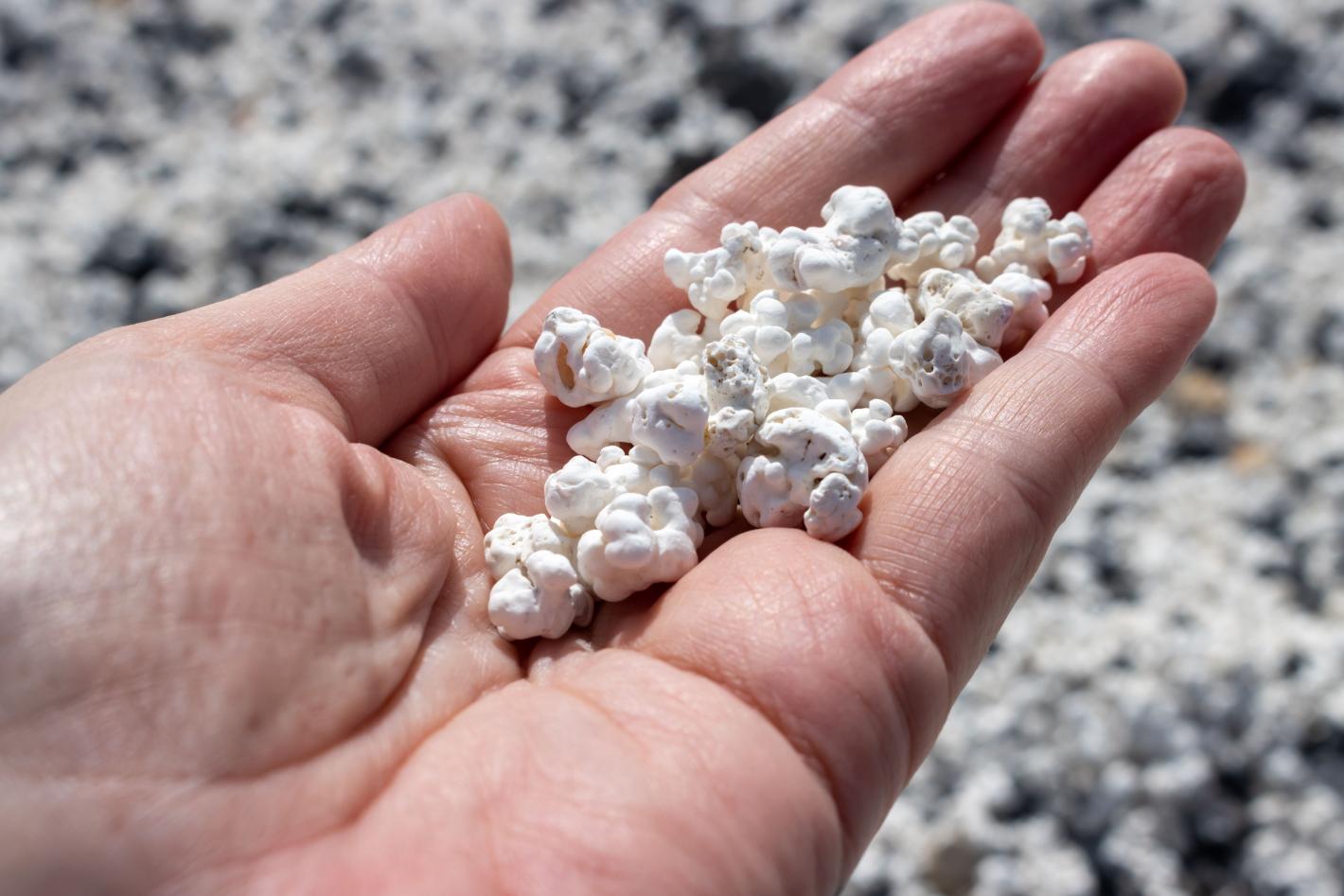 Тук също така няма шезлонги, тъй като „плажът на пуканките“ е чудо на природата, на което да се възхищавате, докато се разхождате или карате колело.